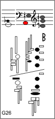 | Multiphonics for Modern Bassoon Fingerings, Notation and Spectrum Analysis Charts P5: Multiphonics with fingering foudations on G fingerings (click on image to hear sound sample) |